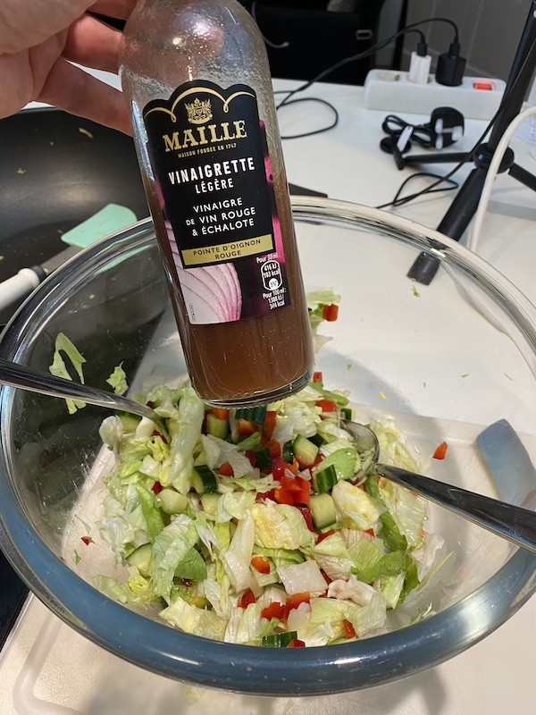 Verder gaat er heul veul kaas in. Superlekker, maar dat maakt het wel wat zware kost. Maak er dus een lekkere lichte salade bij. Erie adviseert atjar ketimoen (zoetzure komkommer) maar ik heb er een eenvoudige groene salade bij gemaakt met een vrij neutrale vinaigrette.