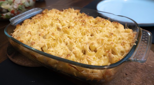 Zowel de kip als de macaroni wordt gekookt in kippenbouillon. De bouillon waarin de kip is gekookt, kun je na het koken prima invriezen voor later gebruik als smaakmaker in andere gerechten. Weggooien is zonde.